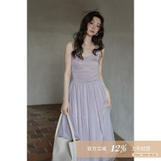 法式气质收腰显瘦无袖背心连衣裙女2025夏季新款高级感紫色短裙子