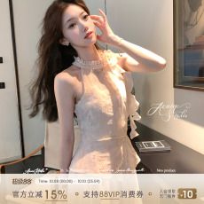 MMMOUND 法式气质名媛镂空挂脖无袖连衣裙女夏新款纯欲修身包臀裙