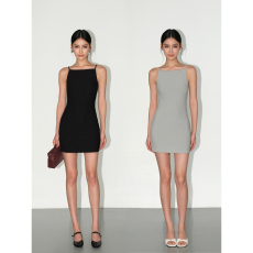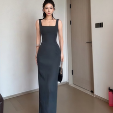 instahot 法式复古性感方领连衣裙女夏季新款简约气质无袖吊带裙