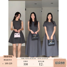 NEVAHU灰色无袖背心连衣裙女2025夏季新款叠穿气质收腰小个子短裙