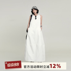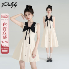 一三良品小个子 简单气质无袖法式黑色白背心连衣裙长裙子女夏