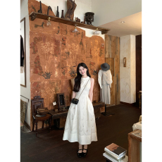 Ti提提 蛮蛮 白色真丝提花长款无袖改良旗袍修身气质连衣裙夏季女