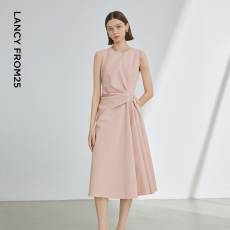 姚晓棠同款没2月简约无袖绑带花苞连衣裙显瘦气质棉质背心裙女夏