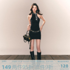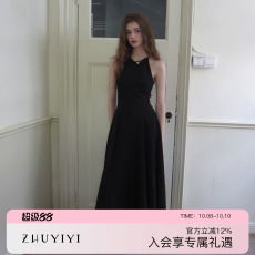 明星日记纯欲风挂脖连衣裙女小众设计感显瘦气质无袖短裙子2025夏