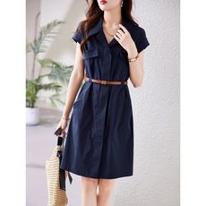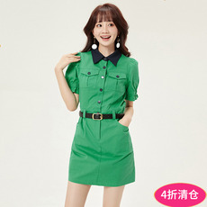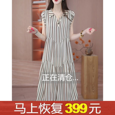 气质高级感polo领条纹衬衫连衣裙女夏季大码遮肚子显瘦欧货直筒裙