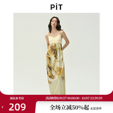 PIT复古拼色收腰露肩无袖吊带连衣裙女2025夏薄款透气直筒中长裙
