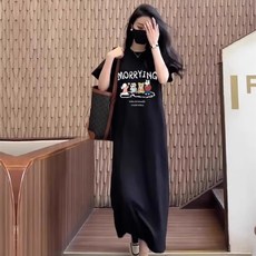 黑色短袖T恤裙女2024新款夏季宽松中长款休闲直筒懒人过膝连衣裙