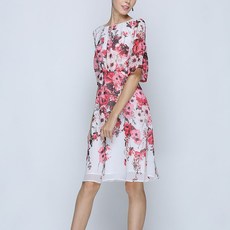 百依秀子时尚休闲2025夏新款印花圆领直筒桑蚕丝真丝连衣裙B7130