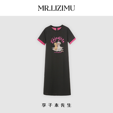 李子木夏季圆领短袖连衣裙2025新款宽松显瘦休闲百搭减龄直筒长裙