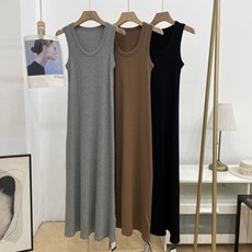醋酸无袖宽松连衣裙纯色直筒背心长裙气质通勤简约百搭女夏季显瘦