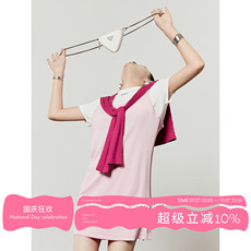曼德诗POLO连衣裙女2025夏季新款撞色设计感H型直筒短袖T恤裙子
