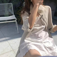 ounce现H25夏款韩国东大门白色清新宽松显瘦花边直筒连衣裙背心裙