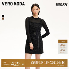 Vero Moda连衣裙24秋冬新款套装网纱打底PU吊带裙风32447D008
