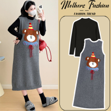 孕妇连衣裙套装时尚辣妈毛衣外套针织打底内搭两件套2025新款秋冬