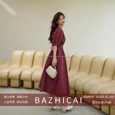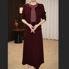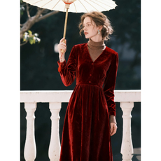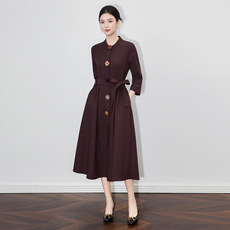 秋季新款轻奢高级感老钱风暗红色连衣裙收腰显瘦单排扣中长款裙子