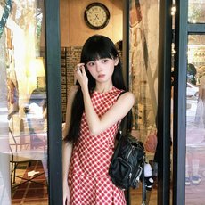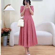 秋冬气质显瘦红色格纹中长款收腰显瘦端庄大气法式轻奢连衣裙