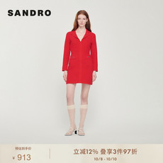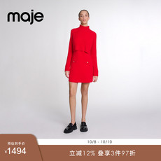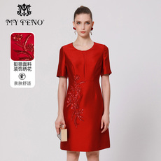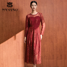 菲梦伊含羊毛亮片红色连衣裙女秋装新款复古高端加厚收腰A字裙子