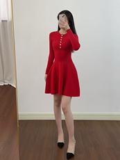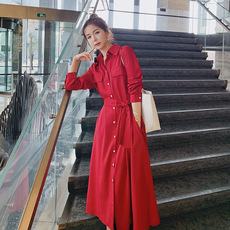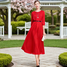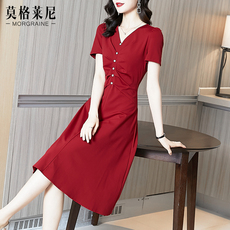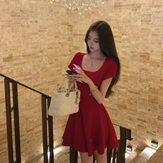 连衣裙红色收腰