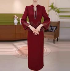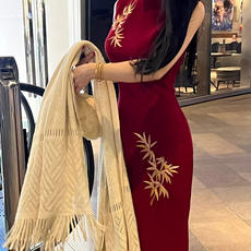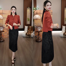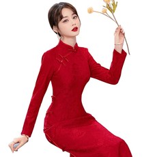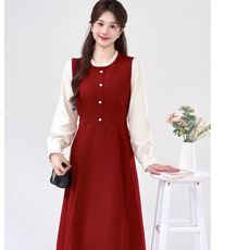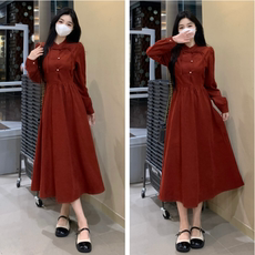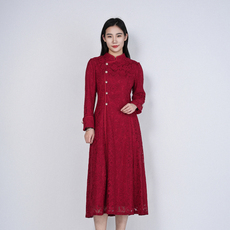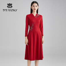 大码新中式气质盘扣红色连衣裙女秋冬胖mm国风少女显瘦收腰长裙子