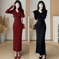 秋冬修身红色针织连衣裙子女装2025早秋新款辣妹收腰性感包臀裙