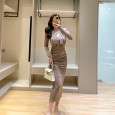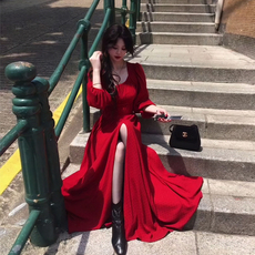 秋季新款洋气红色气质优雅收腰塑身惊艳绝美有女人味连衣裙包臀裙