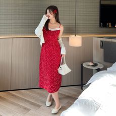 法式纯欲红色吊带连衣裙夏季新款甜美小个子气质收腰显瘦背带短裙