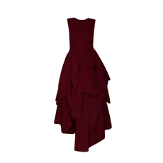 大码红色波点花裙肌理感不规则裙摆A字裙短袖连衣裙收腰显瘦长裙