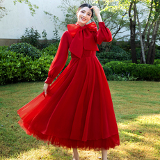 高端红色连衣裙2025秋季新款名媛法式收腰显瘦遮肉高端小个子裙子