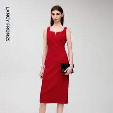 朗姿三醋酸收腰红色气质吊带裙通勤风高级感2025年夏季新款连衣裙