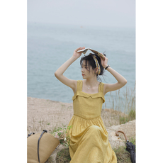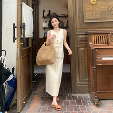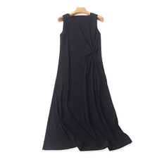 杏色扭结V领背心吊带连衣裙女夏季新款宽松慵懒风中长款显瘦裙子