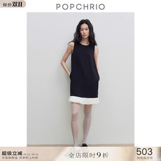 POPCHRIO欧可芮◆法式赫本风撞色拼接无袖背心裙圆领小个子连衣裙