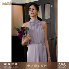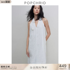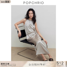 POPCHRIO欧可芮◆醋酸高级感气质缎面挂脖连衣裙中长款背心裙女夏