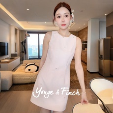 YongeFinch扬芬缇2025夏季无袖吊带背心连衣裙粉色圆领裙BERTHAY