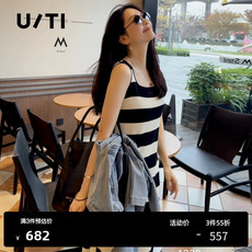 U/TI不规则条纹棉质背心裙女装廓感连衣裙吊带裙尤缇2025夏季新款