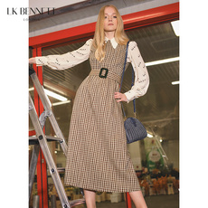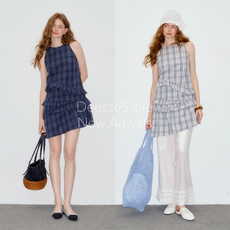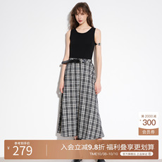 Basic House/百家好轻熟风假两件格纹连衣裙女2025夏季显瘦背心裙