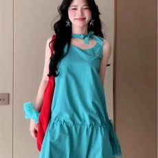 卓雅周末25夏季新款学院风撞色翻领蝴蝶结收腰背心连衣裙R220947A