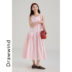 画风drawwind不规则背心连衣裙女2025新款夏季纯棉休闲无袖长裙夏