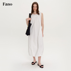 范洛Fano 低调质感双层假两件U领大口袋花苞背心连衣裙女2025夏季