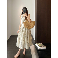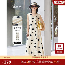 米思阳2025夏季新款时尚高级感波点连衣裙舒适丝麻混纺品质背心裙