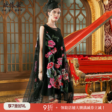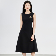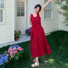 良良家设计感立体廓形背心连衣裙女夏季新款法式浪漫圆领无袖长裙