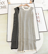 日单女条纹Bra无袖连衣裙带胸垫裙子背心裙显瘦长裙477278/477163