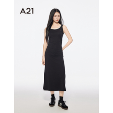 A21女装拼接大圆领假两件连衣裙2025夏季新款简约长裙修身背心裙