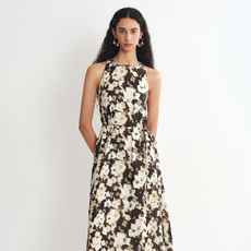Fabrique真丝桑蚕丝亚麻印花通勤背心连衣裙2025夏季新款裙子女夏