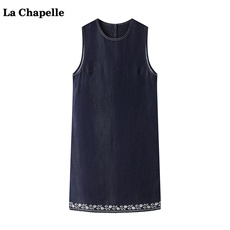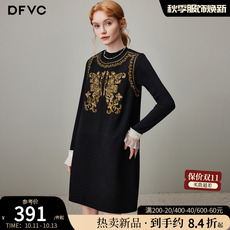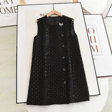 dfvc黑色复古重工钉珠背心裙女2025年冬季新款宽松圆领无袖连衣裙