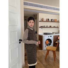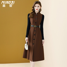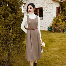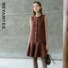 颜域优雅小香风连衣裙女士2025新款冬季咖色复古中长款裙子背心裙
