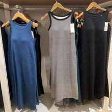 日系蓝色棉麻无袖连衣裙女夏日绝美宽松遮肚度假风亚麻背心中长裙