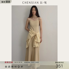CHENXIAN辰现优雅叠穿针织吊带背心连衣裙垂坠感修身中长款裙子女