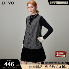 dfvc黑色复古丝绒拼接背心裙女2025年冬季新款宽松圆领无袖连衣裙