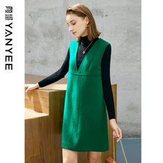 颜域无袖v领连衣裙2024冬季新款女装气质减龄时尚百搭羊毛背心裙