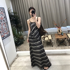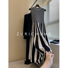 孤时髦赫夲洋气复古 黑白肌里感 摆大针织竖纹垂坠无袖背心连衣裙
